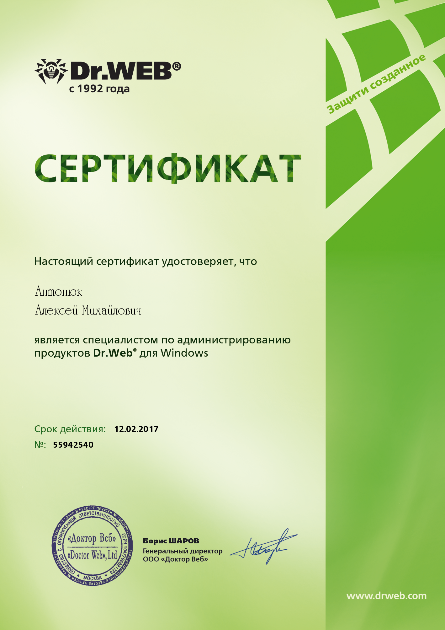 DWCERT-001 - Dr.Web Windows. Специалист по администрированию Dr.Web для Windows.